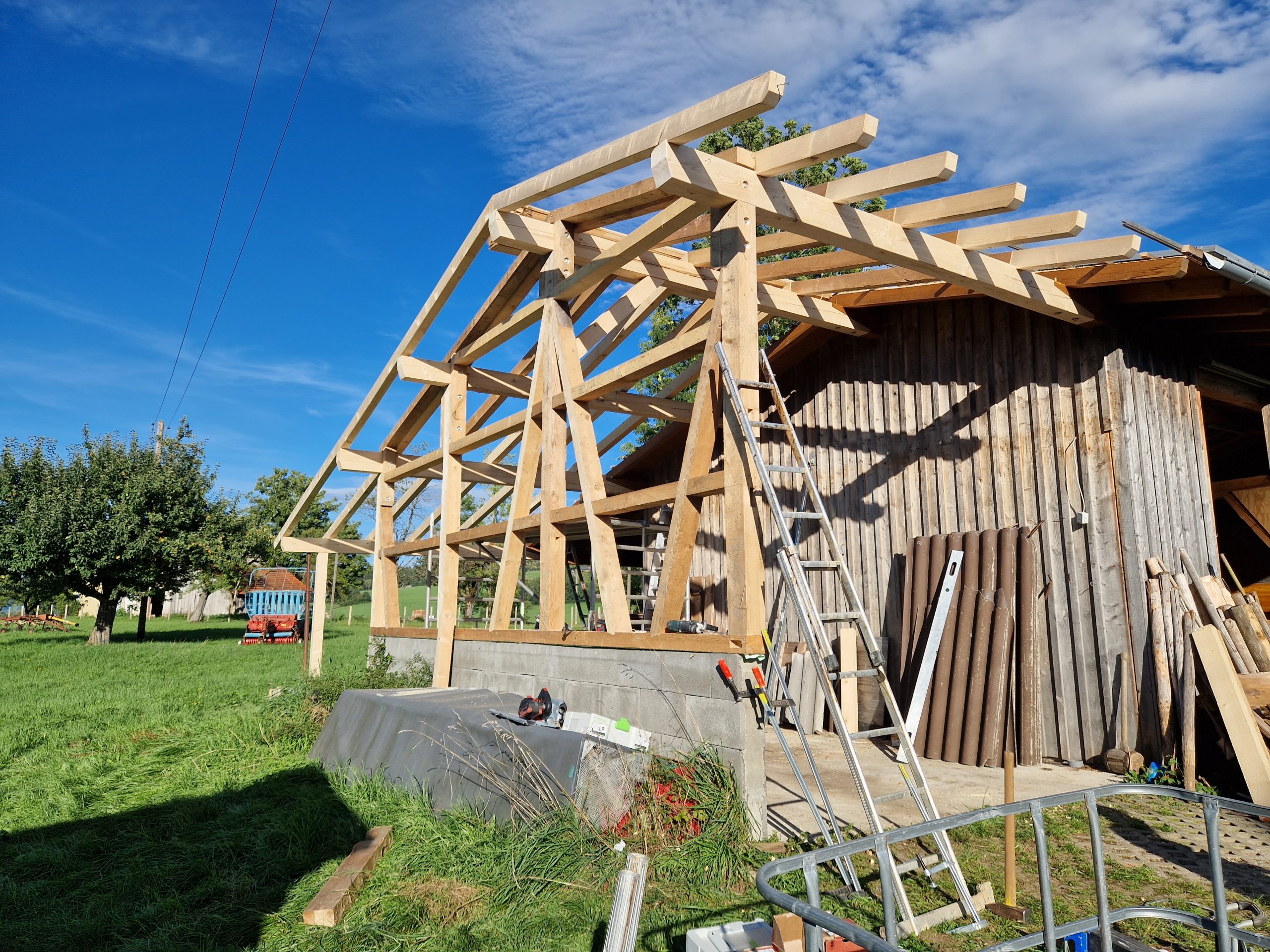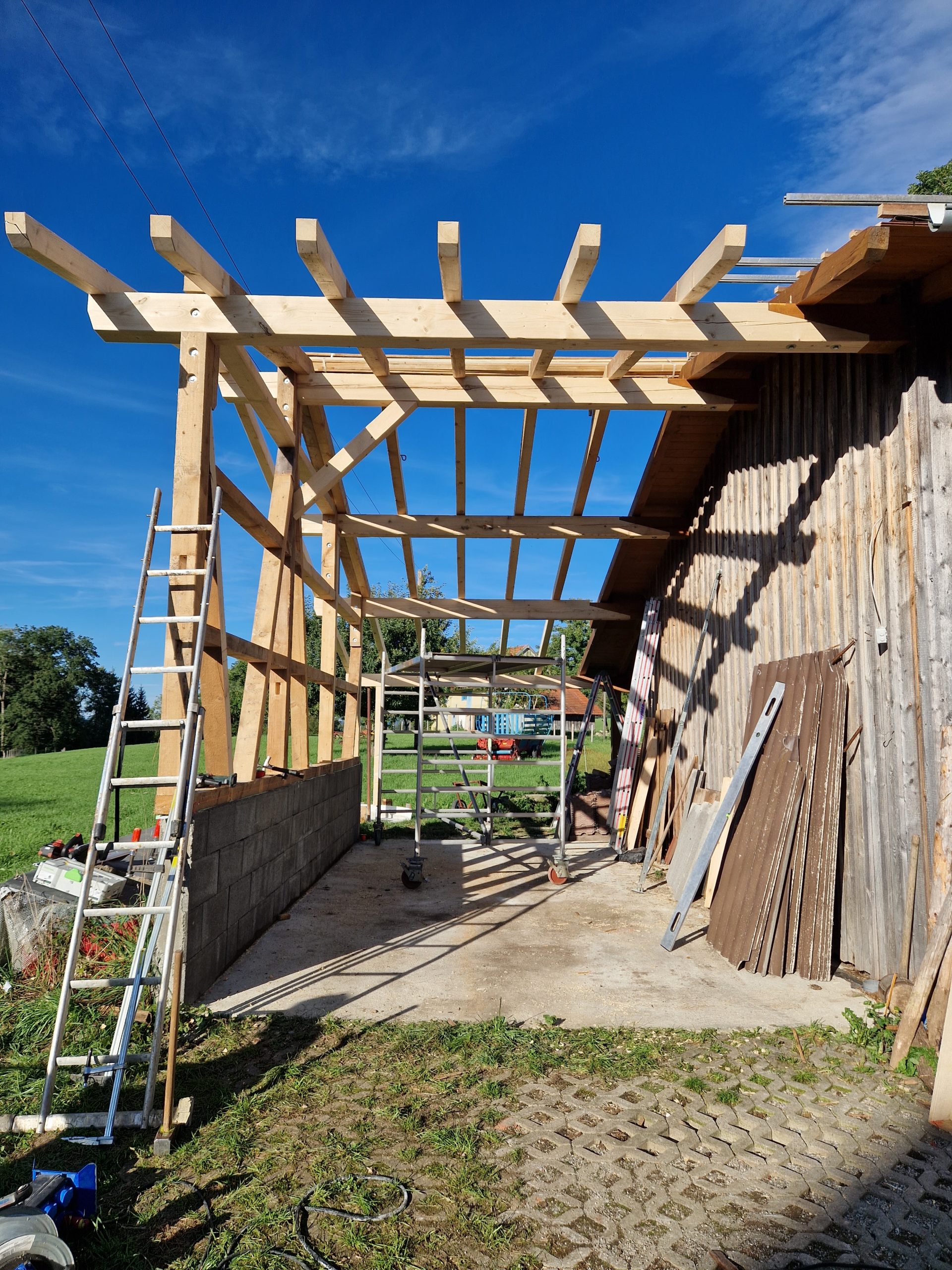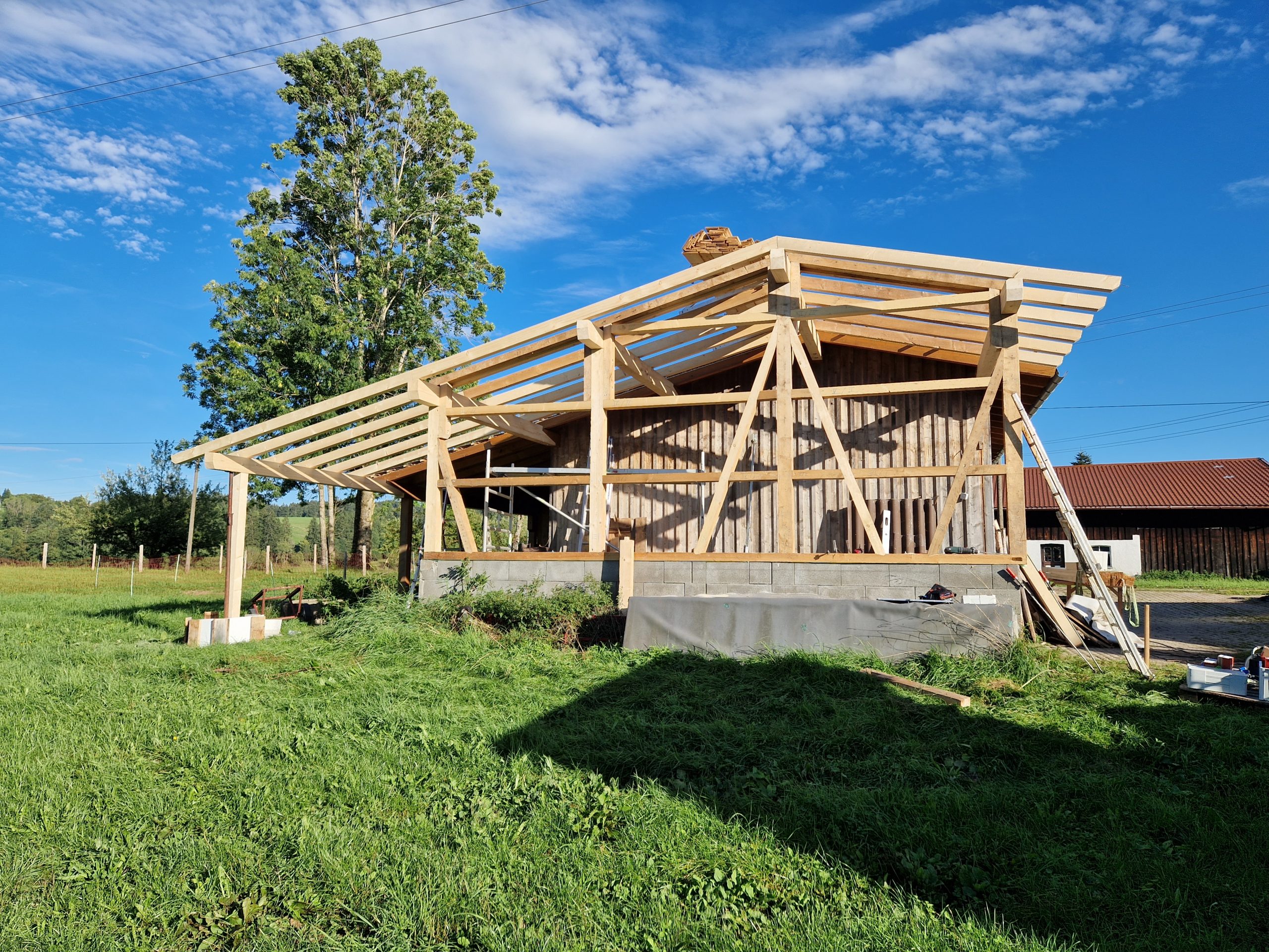Wenn du nicht mehr weißt wo hin mit deinen Maschinen, dem Heu oder dem Stroh bin ich der richtige Ansprechpartner für dich. Seit Jahren stehe ich Landwirten zur Seite einen Raum zu schaffen, der überdachte Lagerflächen bietet. Selbst im Odenwald konnte ich so eine Landwirtsfamilie glücklich machen. Gerne können wir uns für diesen Zweck auch über den Einsatz von Käferholz unterhalten. Trotz der Löcher ist nämlich auch das Käferholz voll einsetzbar, wenn auch vielleicht nicht ganz so makellos.